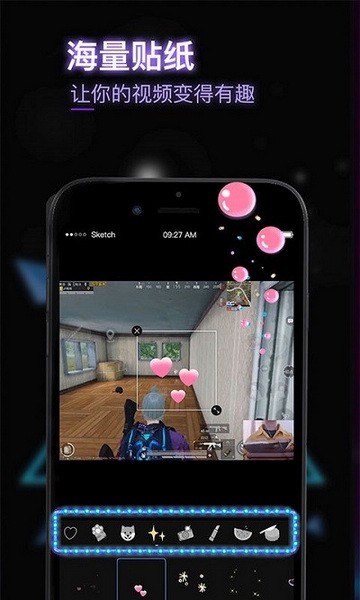 – 添加有趣的边框和贴纸,也支持在视频上添加本地图片和自定义水印效果
