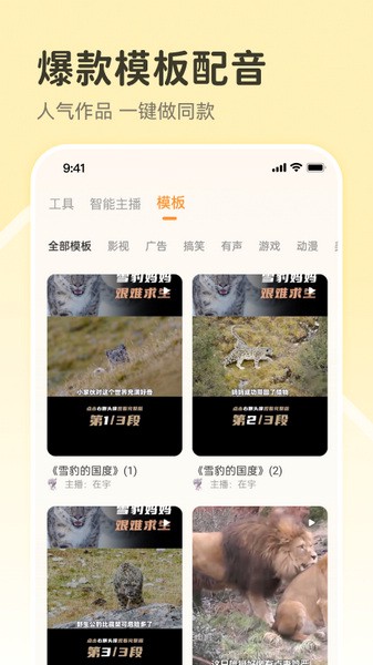 简单的操作设计加上精心剪辑的视频片段,后期制作一气呵成,让你轻松体验配音的乐趣