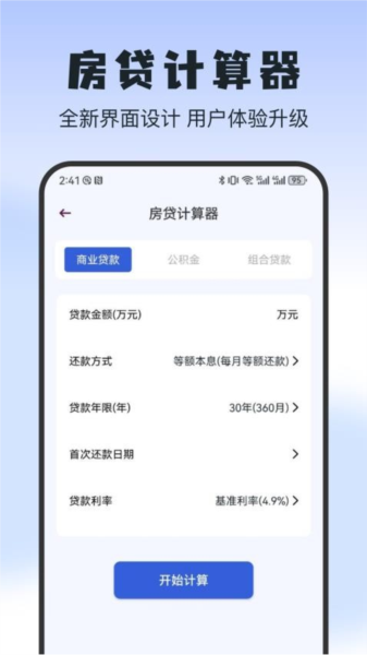 用户可以利用软件进行商业贷款、公积金、组合贷款多种模式的房贷计算。