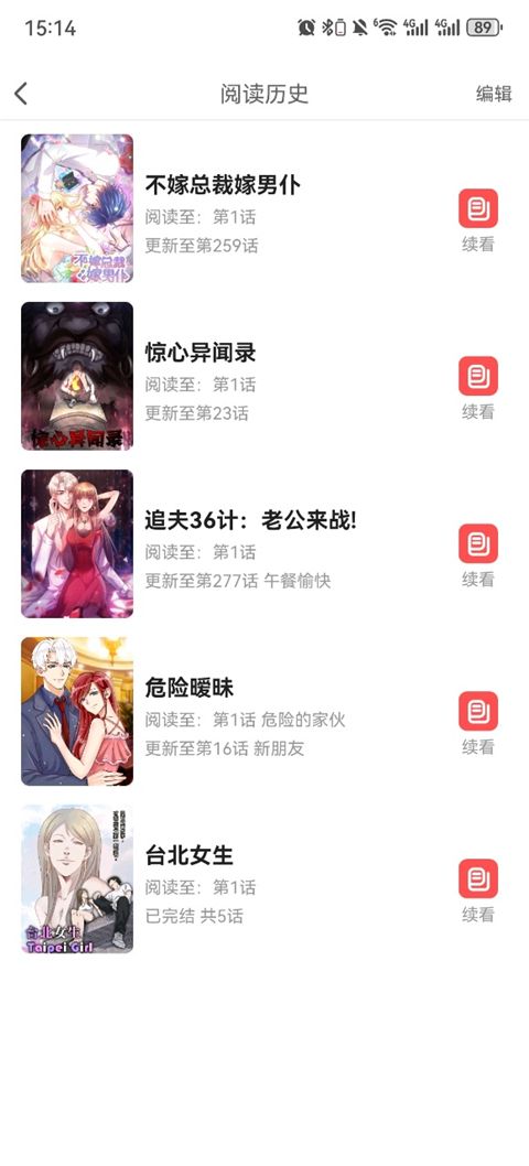 6. 如果忘记了当时的漫画可在我的预览记录中查看或直接续看。