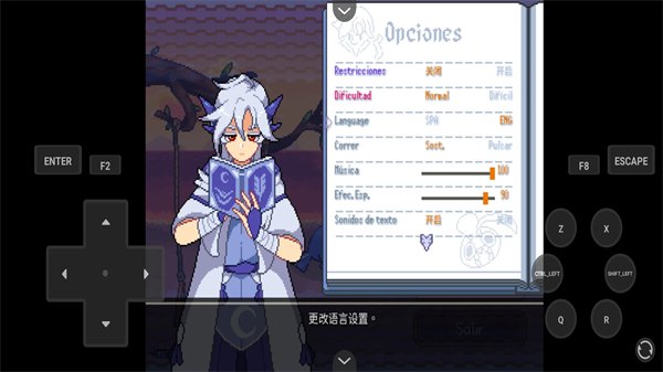 2. 进入游戏,我们会发现游戏界面是西班牙语,没关系,该游戏内置中文,我们选择Opciones,按下enter。