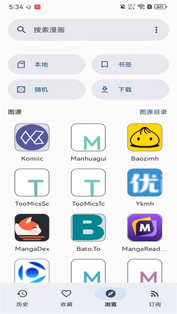 1. 用户启动kotatsu漫画阅读器软件,在“历史”界面长按屏幕