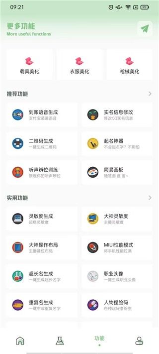6. 如果你想使用美化功能,前往第三功能板块中即可使用,以及灵敏度、大佬布局等;