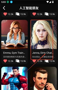 1. 软件汇聚了特别多的ai角色,充满了新鲜感。