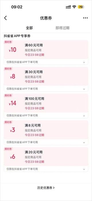 3. 即可查看所有已领取的优惠券。切记查看优惠券的有效时间,确保及时使用!