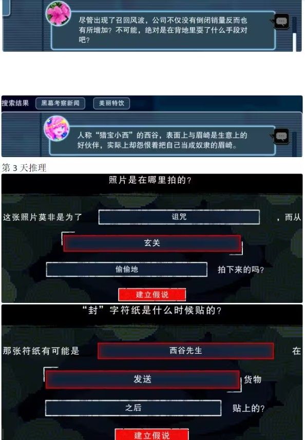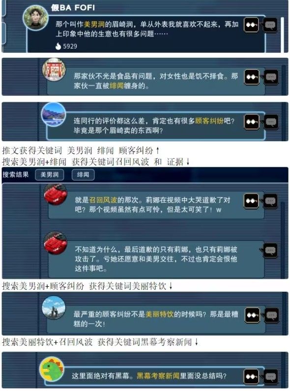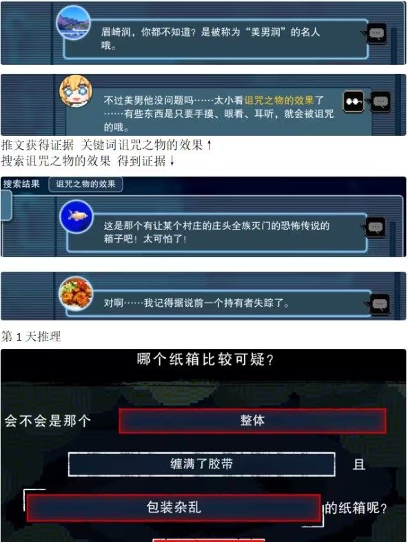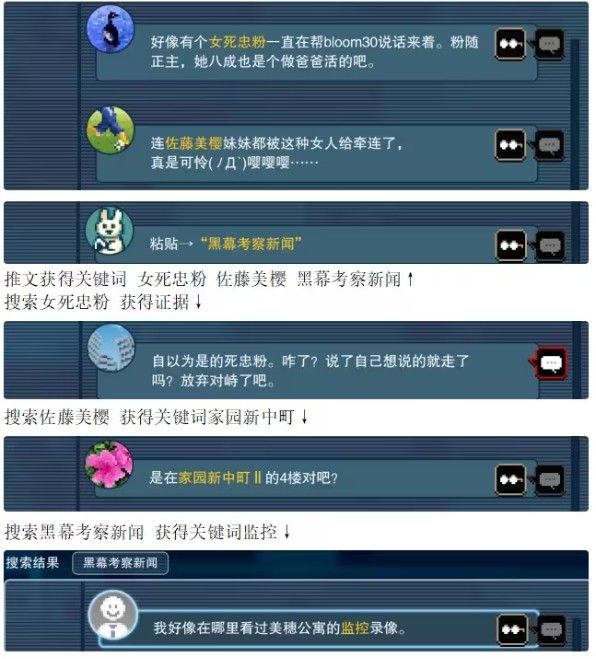 2. 和不同的npc来进行互动,收集许多的证据。