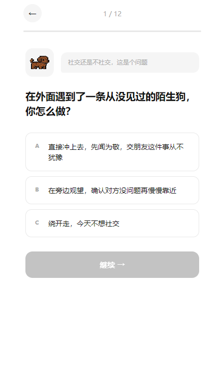 2.核心是探索用户的个性特质,通过一系列趣味问答,找到属于你的犬类化身。