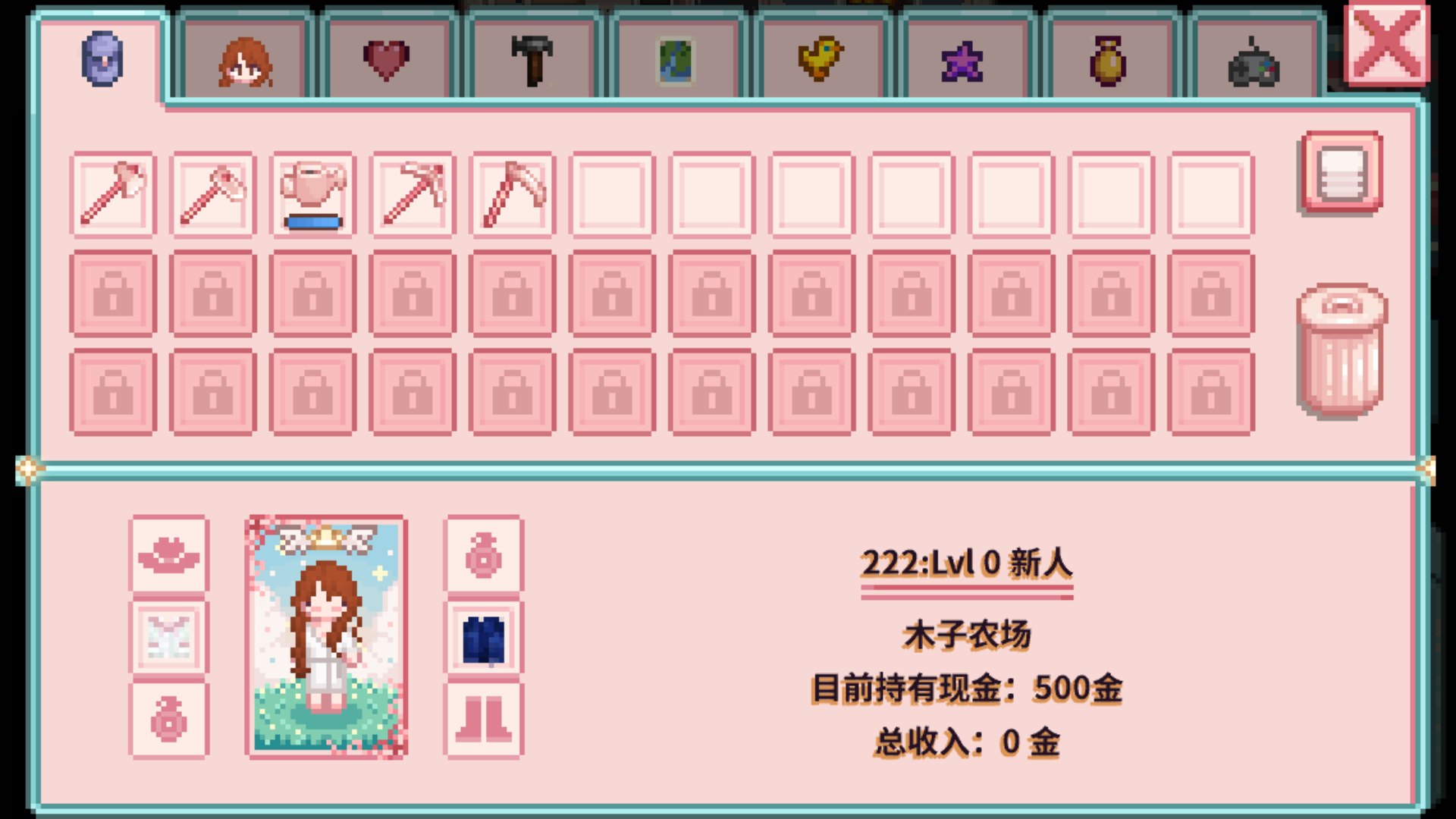 前期把鱼竿升到玻璃纤鱼竿(钓鱼等级3级解锁,1800金),铱金鱼竿个人觉得没必要,想买了就买,自行决断。其次是升级洒水壶,提高灌溉效率。其他的工具基本没闲钱升,先扔那儿不管。