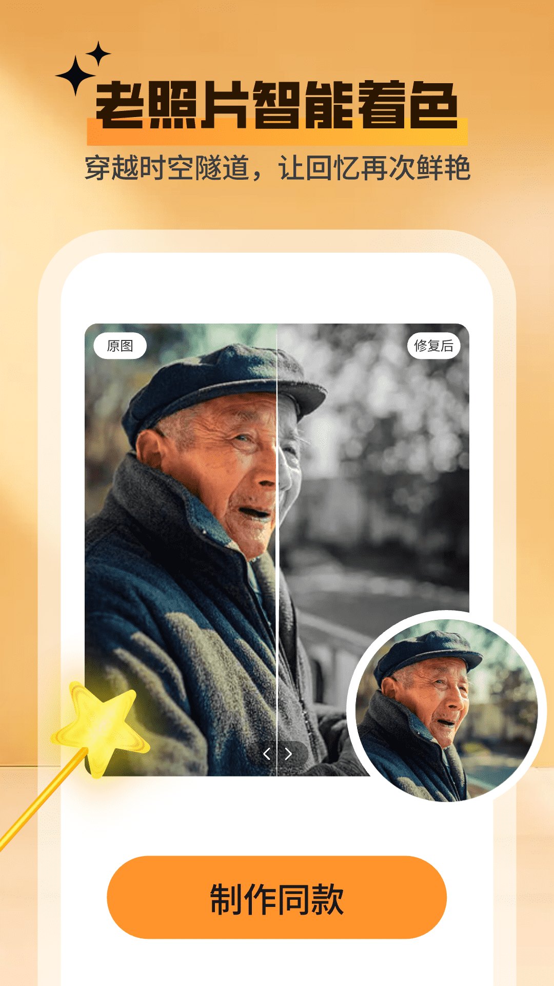 3. 黑白照片上色功能,算法为黑白照添加自然色彩,还原真实历史场景。