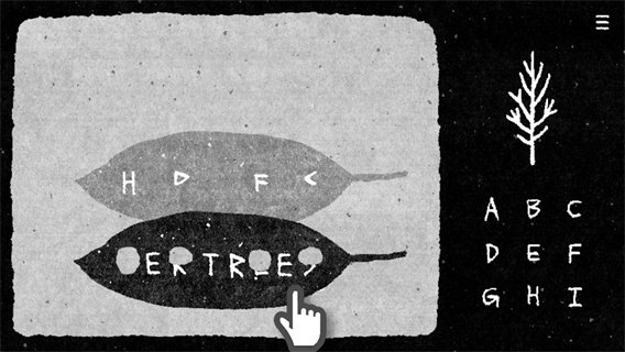 1. 进入游戏初始界面,界面的树叶上标有HER TREES字样,右侧是九宫格字母,根据提示依次点击H E R E E S字母,成功解锁后续谜题,让探险之旅启航。