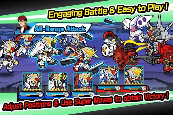 line高达大乱斗是一款集合了策略与热血动作的移动游戏,它以浩瀚的高达宇宙为宏大背景,将众多经典机体以独特Q版造型结合精细3D建模技术进行重现,游戏不仅囊括了丰富多元的战斗模式,还支持玩家之间的社交互动,六种特性各异的机体类型与层出不穷的玩法,允许每位指挥官自由组合并打造属于自己的王牌战队,逐步摸索出专属的战斗节奏与策略核心。