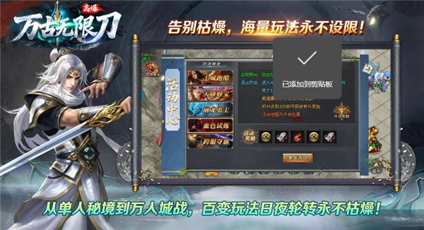 万古高爆无限刀是一款精心打造的单职业传奇动作角色扮演手游,游戏立足于构建一个长久稳定且充满惊喜的奇幻世界。本作在继承经典玩法的基础上,大胆革新,推出了独特的无限刀战斗体系,配合公平透明的经济系统和丰富的资源获取途径,致力于为所有玩家提供一个真正绿色健康的游戏环境。无论是热衷于挑战的硬核玩家,还是享受轻松氛围的散人玩家,都能在这里找到属于自己的乐趣。