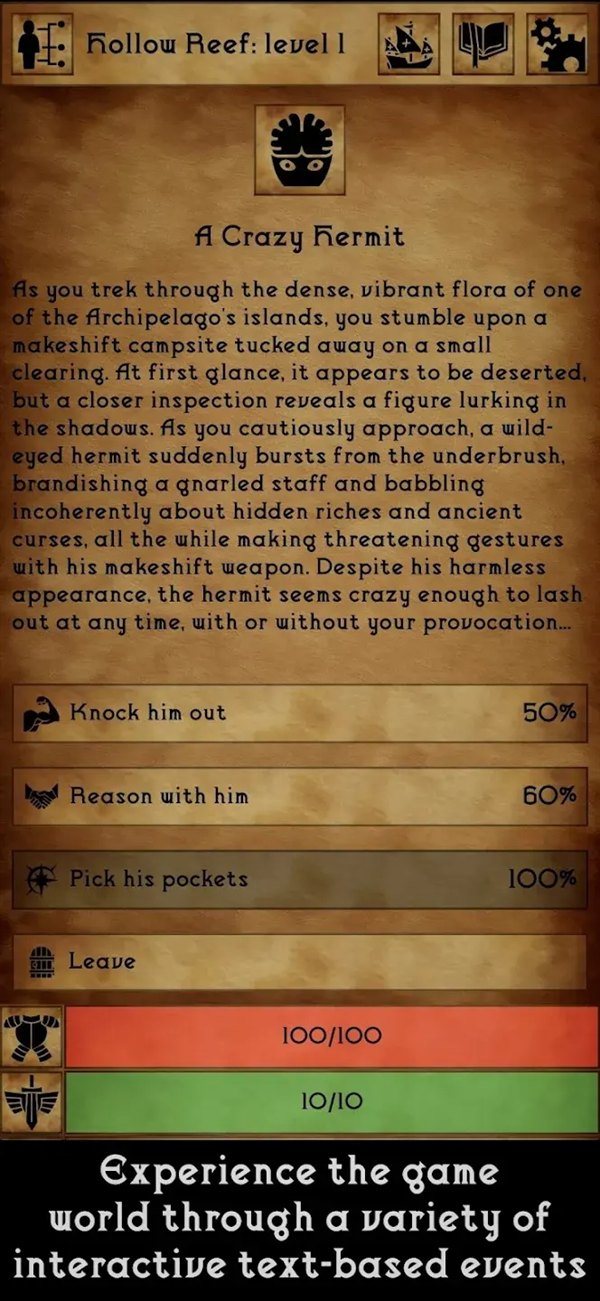 1. 航海与资源管理:您将亲自掌舵,驾驭您的舰船在广阔而变幻莫测的热带海域中探索。精心招募并管理您的船员团队,合理分配极其有限的淡水、食物等生存资源,以应对远航途中突如其来的海上风暴与其他未知危机。