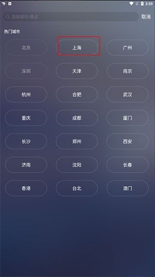 6. 选择你想要的城市,界面没有的话还可以使用搜索功能,点击即可;