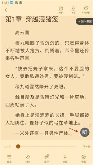 4. 在看小说的时候也可以点击听图标来进行听书。