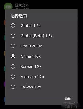 注意”游戏变体“很重要,如果你要玩《和平精英》就要选择”China 1.10x”,国际版的话就选”Global 1.2x”。