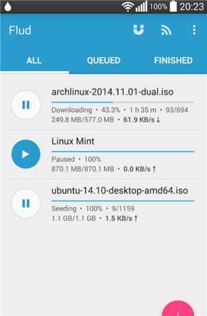 flud下载器安卓手机版是一款非常专业的下载软件,操作起来很简单,一些种子文件也可以直接看到,处理起来很方便,还适配了多任务来进行处理,操作起来也比较方便简单,还搭配了简洁直观的现代界面,新手也能够快速上手和玩耍,许多的功能都可以尝试,付费版也可以去除不同的广告,感兴趣的话快来装机软件网下载体验吧!