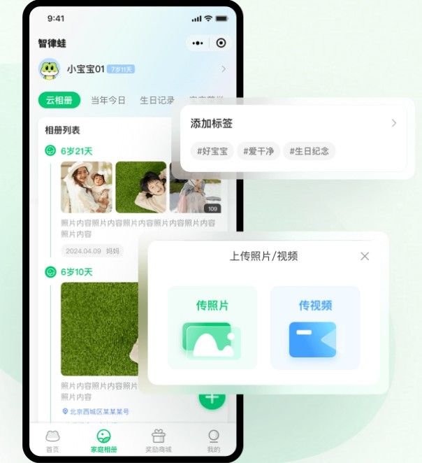 创建宝宝的成长相册,让家庭成员共同记录和见证孩子每一个温馨时刻。