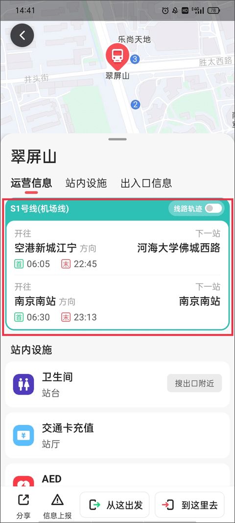 3. 选择好起点和终点后,你就会看到它的运营信息、站内设施以及出入口信息了,非常详细。