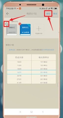 点击【编辑】,点击要删除的计划左上角的【x】(读音:叉)。