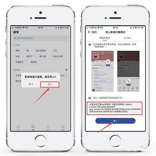 2. 把链接复制后,回到【发条】应用,app会自动识别到链接中的歌单,按提示,点击【导入】即可同步;