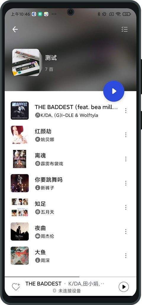 在发条内,你可以在一个创建的歌单里添加来自不同音乐平台的歌曲,你可以第一首放QQ音乐的歌曲,下一首放网易云的独家歌手的歌曲..让听歌软件回归听歌的本质,这是发条一直想做的事情。