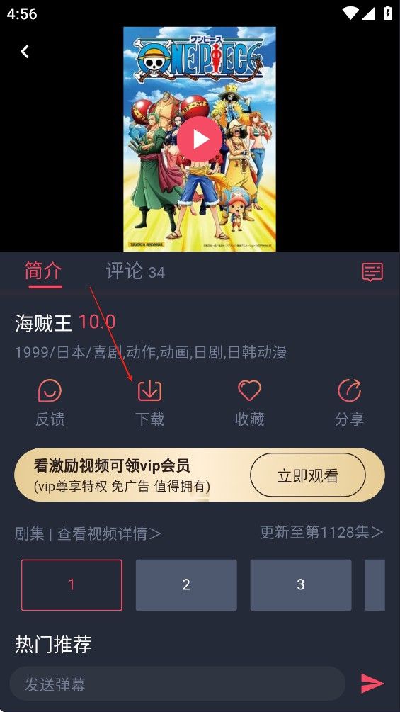 2. 点击【下载】按钮,能将感兴趣的剧集缓存下来,无需额外消耗设备的流量。