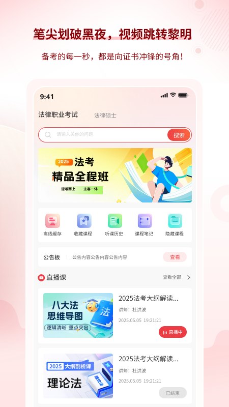 2.学习界面支持离线缓存、课程收藏、听课历史与笔记管理