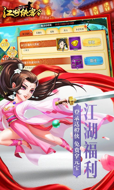 2. 开服七日狂欢,每日登录有好礼,充值6元得神仙姐姐,连续登录获传说侠客及神品装备。