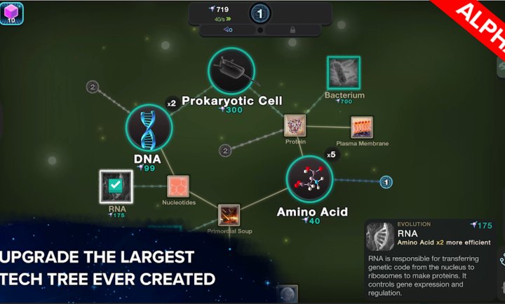 从细胞到奇点ip全新扩展包,以现实为背景,带来全新的玩法体验,支持放置挂机,通过不断点击屏幕获得大量的资源,在奇妙的宇宙中感受非凡的进化史。不同的节点代表不同的进化路线,不断地进行演化,史诗般的进化等你来探索。