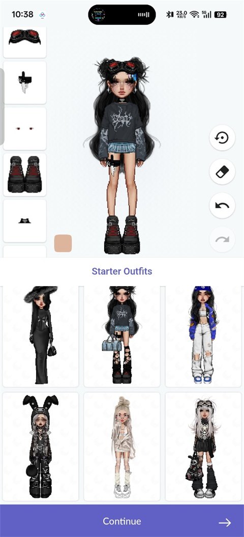 3. 选择对应的服饰,有的支持多种颜色,可以变色,人物右侧有上一步和下一步,橡皮可以撤销角色身上的一切装扮。