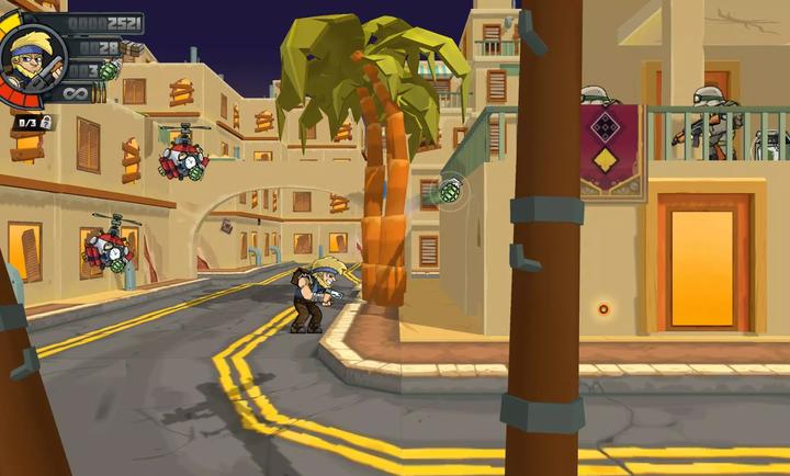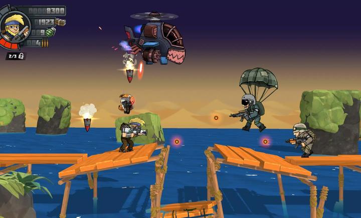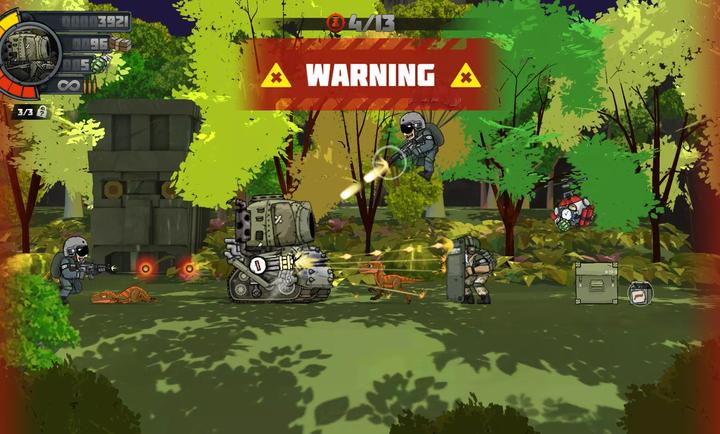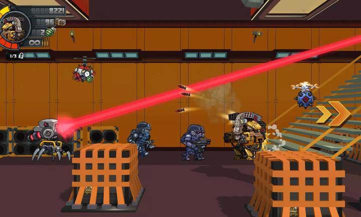 1. 采用横版动作射击机制,玩家可自由奔跑、跳跃、翻滚和射击。