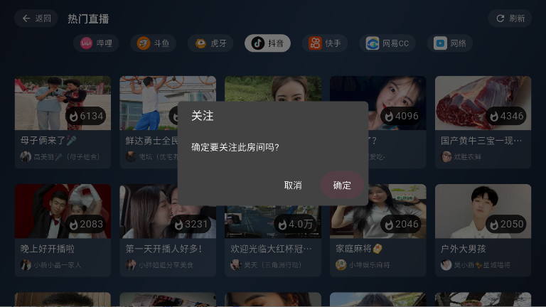 3. 大家可以看到上方有着哔哩哔哩、斗鱼、虎牙、抖音、快手等不同种类的直播视频,大家想看哪个板块就直接点击哪个板块就好。小编随机点击一个视频。