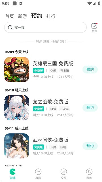 首页推荐游戏按类型划分,找游戏更轻松。