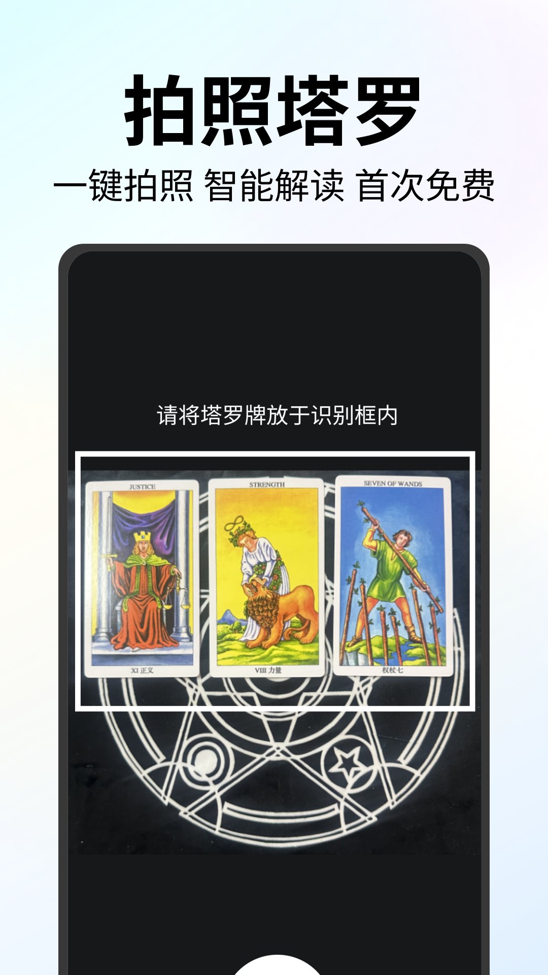 2. APP的拍照识别功能堪称利器,只需对着牌面轻轻一拍,即可一键获取专业解读,该功能兼容市面上绝大多数塔罗牌面,识别成功率极高,彻底解决了的入门难题。