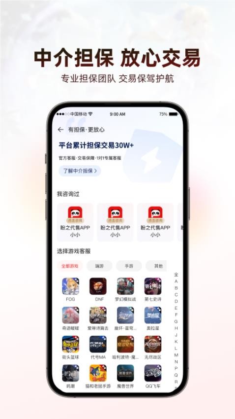 盼之代售平台是专业的游戏账号交易与估价平台,配备专业团队提供买卖担保服务,用户可自由选择多种特色功能实时完成账号交易。平台覆盖全品类热门游戏,支持在线估价、挂牌代售及快速回收,通过中介担保机制确保交易真实可靠,让用户全程放心操作。高效匹配买卖需求,助力玩家轻松实现账号价值变现,有需求的用户赶紧来本站体验。