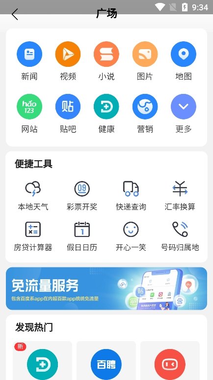 1. 打开软件首先可以看到百度的搜索工具。