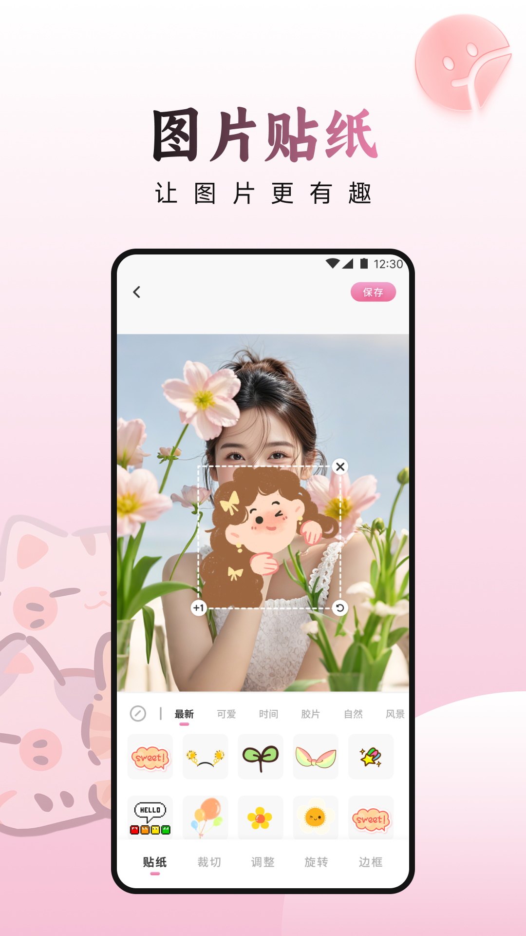 3. 趣味贴纸:海量动态和静态贴纸库,涵盖萌宠、文字、节日主题等,为照片增添趣味和个性。