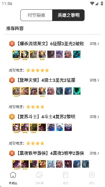 5. 其次软件中的资料库可以帮助用户更加轻松,全面的了解游戏各种诸如英雄,装备,羁绊等方面的游戏数据。