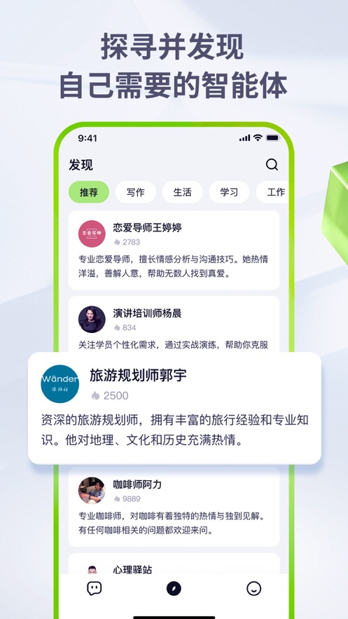 3. 个性化定制:支持创建智能体,用户可以融入个人语言风格和领域知识,打造专属的智能分身。