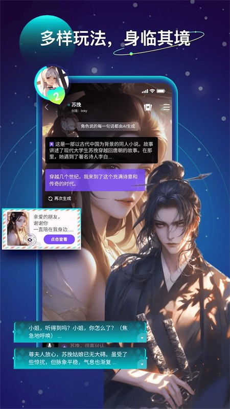LinkyAIApp通过AI技术,赋予虚拟角色以“灵魂”,让他们能够与用户进行情感交流。