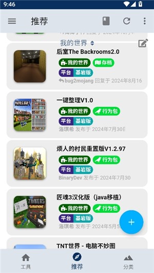 2. 来到推荐界面,在这里我们可以看到很多玩家自己上传发布的模组