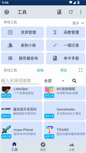 3. 进入工具界面,点击选择工具,比如服务器查询