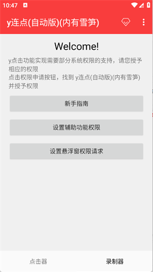 确保连点器软件已获取必要的系统权限,如存储、网络等。