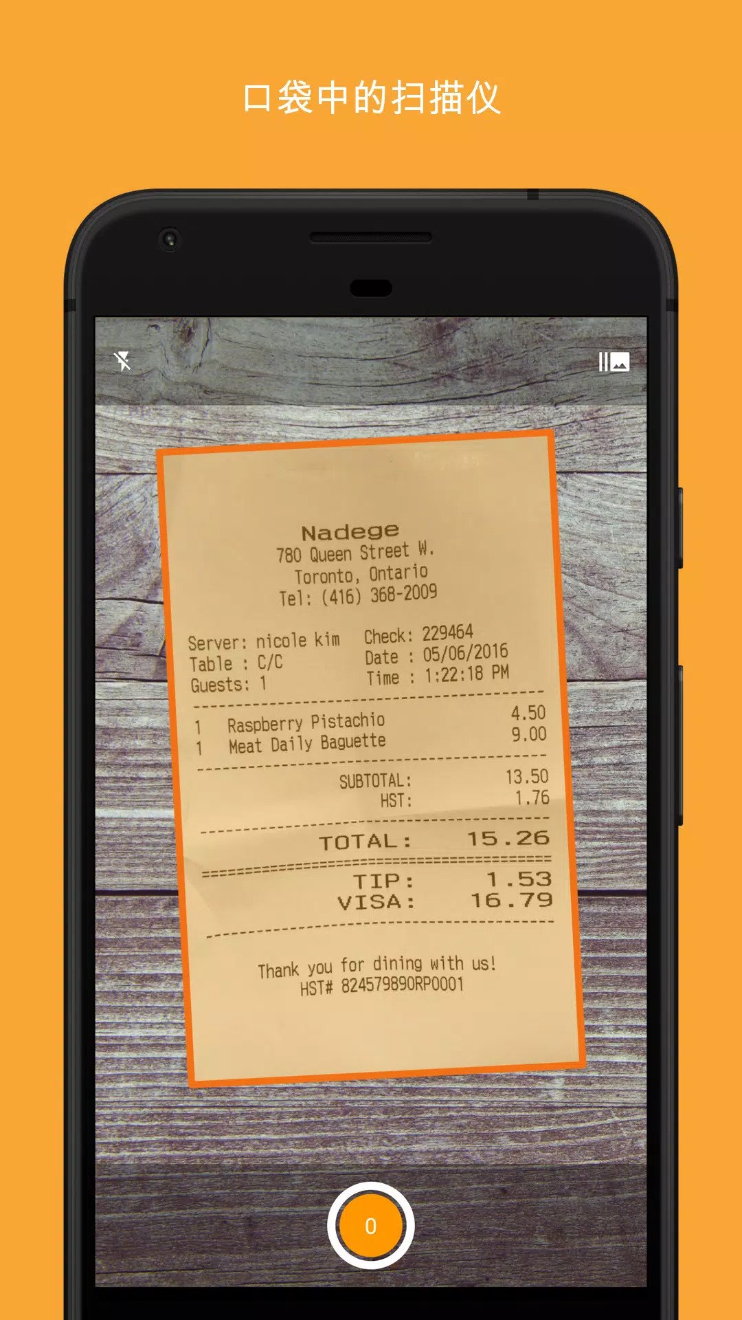 1. 可检测页面边框、裁剪并更正角度:无需拍得很正,精灵扫描会消除不必要的背景。