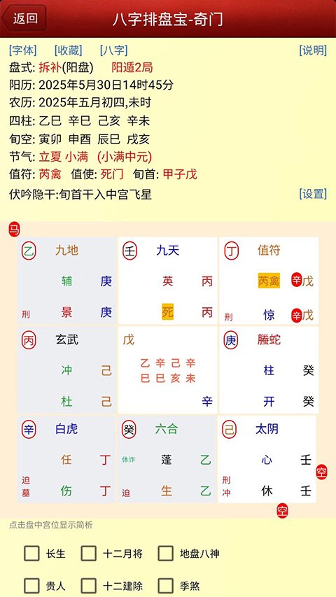 八字排盘宝APP是西安富且乐信息科技有限公司开发的专业八字排盘工具,界面简洁优雅、操作便捷,遵循传统命理理论,适配初学者与进阶用户。软件支持多模式排盘,可设置真太阳时、早晚子、夏令时,切换八字、奇门、紫微等版面,输入生辰信息即可生成详细图文命盘,提供五行、十神、大运流年等精准命理分析与解说。同时支持案例收藏、存盘、截屏、多条件查询等功能,可帮用户选择良辰吉日,为未来规划提供参考,温馨提示:请理智对待命理结果,勿过度依赖。