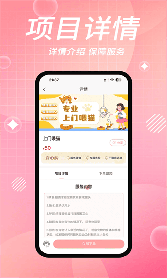 里面还有十分靠谱的宠托,用户可以放心的进行下单上门 服务。
