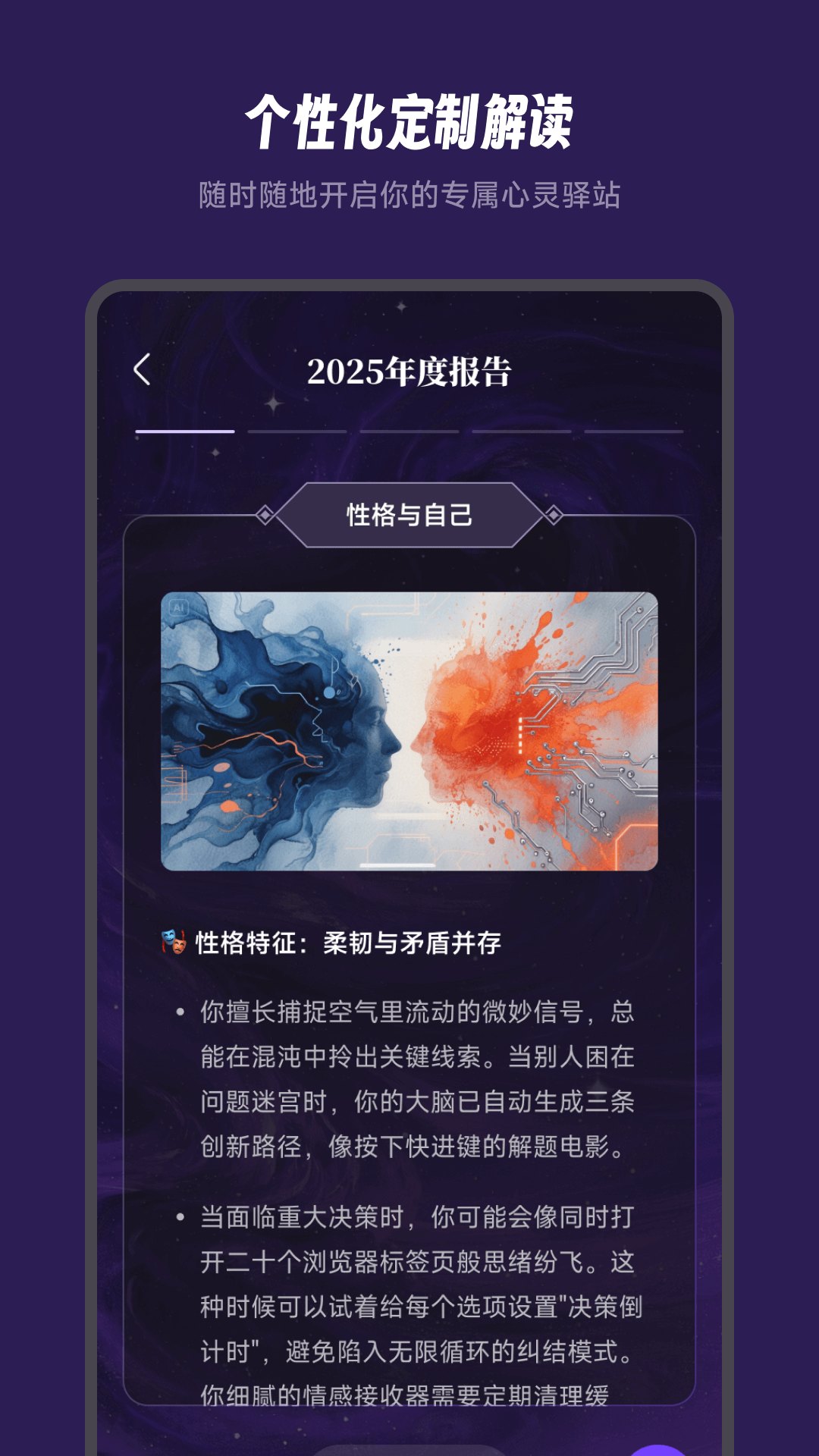 可查看个性化图文“宝典”报告,探索当日情绪走向与专属指引。