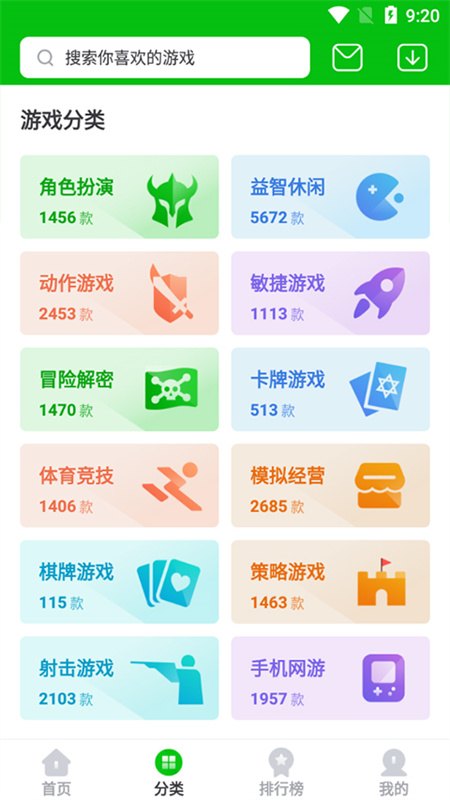 这里提供很多类型的游戏,如角色扮演、休闲益智、动作设计、策略塔防等;