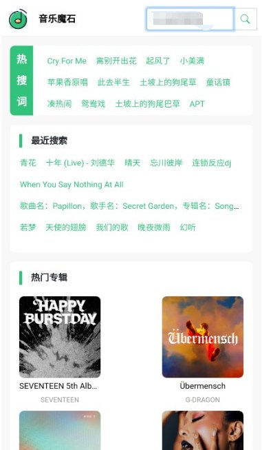 2. 点击顶部的搜索框,可以快速对音乐进行查找。